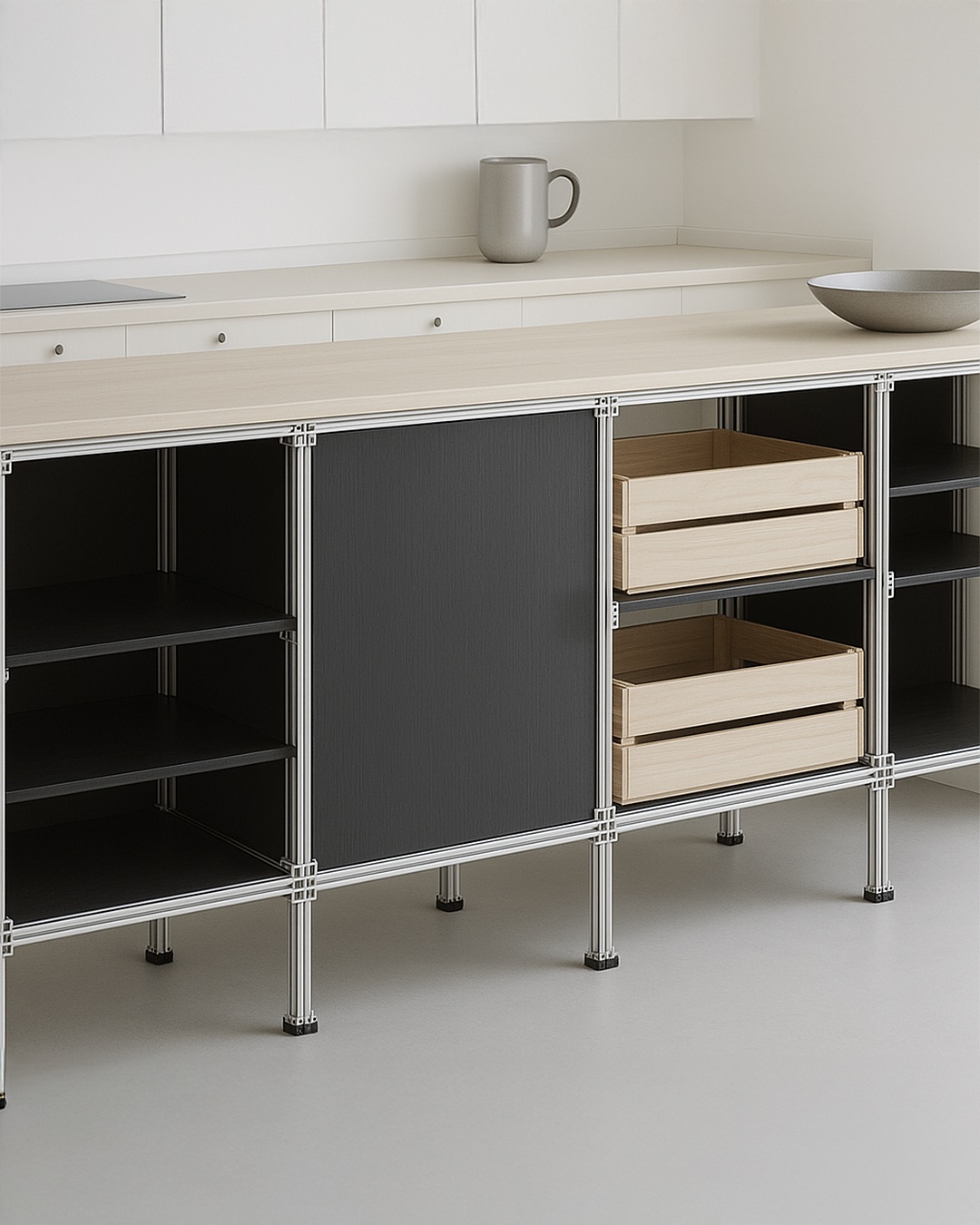 Tú solo tienes que elegir una de nuestras colecciones para cocinas, mesas, estanterías o cualquiera de nuestros sistemas modulares, decirnos medidas y nosotros la adaptamos a tu espacio con precisión milimétrica.